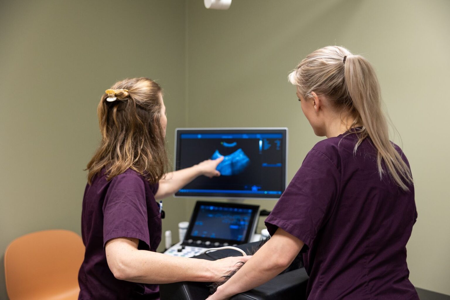 Ultralyd er et annet veldig nyttig apparat som gjør lydbilder fra en probe om til bilder på en skjerm. Med ultralyd kan vi undersøke dyrets indre organer, særlig lever, nyrer og blære. Hvis en hund har livmorbetennelse vil dette som regel være mulig å påvise med ultralyd. Vi bruker også ultralyd for å undersøke om en tispe er drektig. Som regel må pelsen barberes der dyret skal undersøkes og det brukes en gele på huden for å få gode bilder.